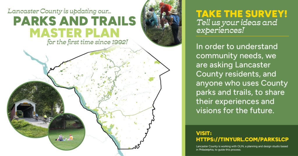 The public survey for the Lancaster County Parks & Trails Master Plan has been released! Here is your chance to provide input into the future of parks and trails in the county.